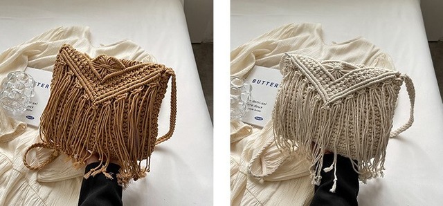 フリンジ付クロシェバッグ