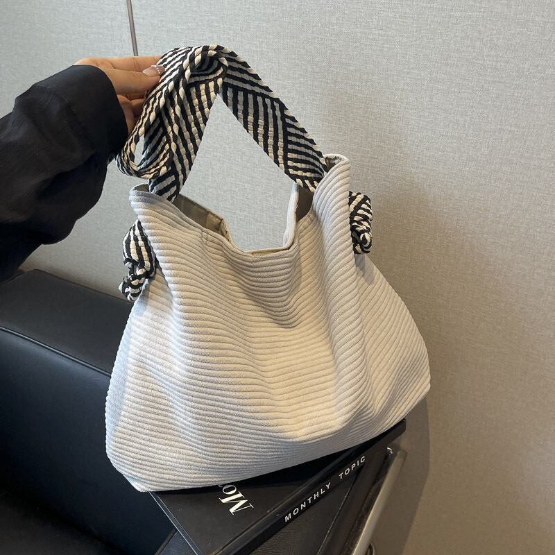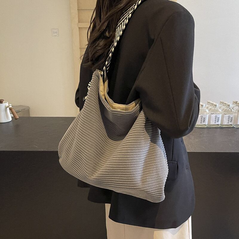 配色ストラップコーデュロイバッグ