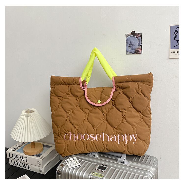 英字刺繍入りキルティングトートバッグ