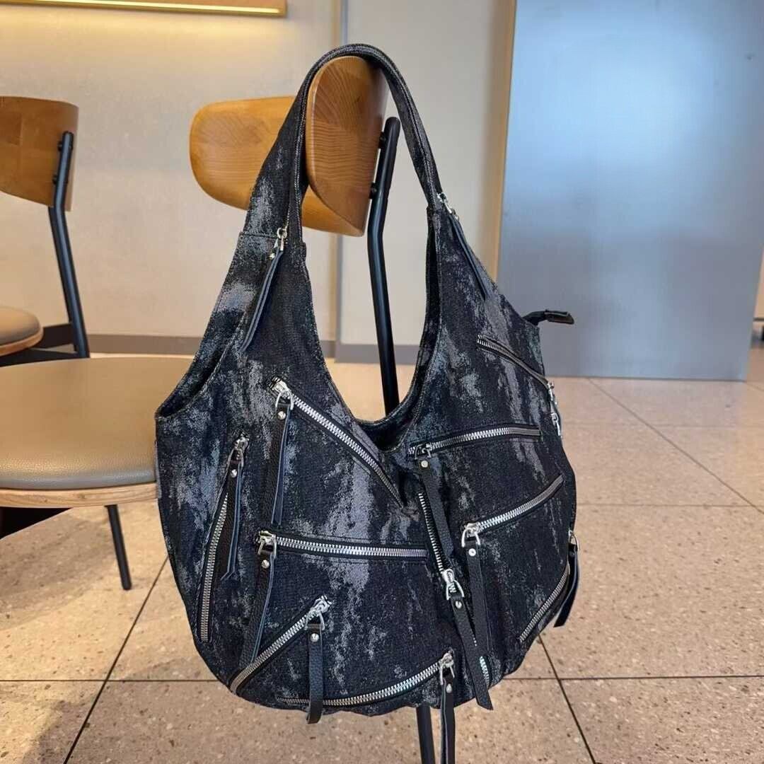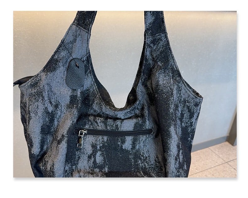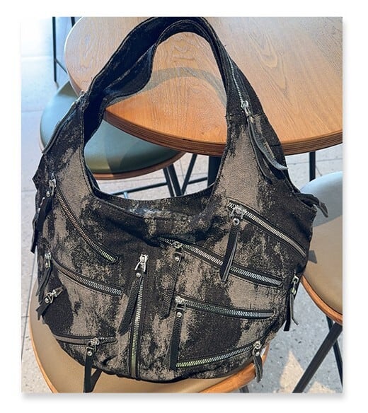 ファスナーデザインデニムトートバッグ