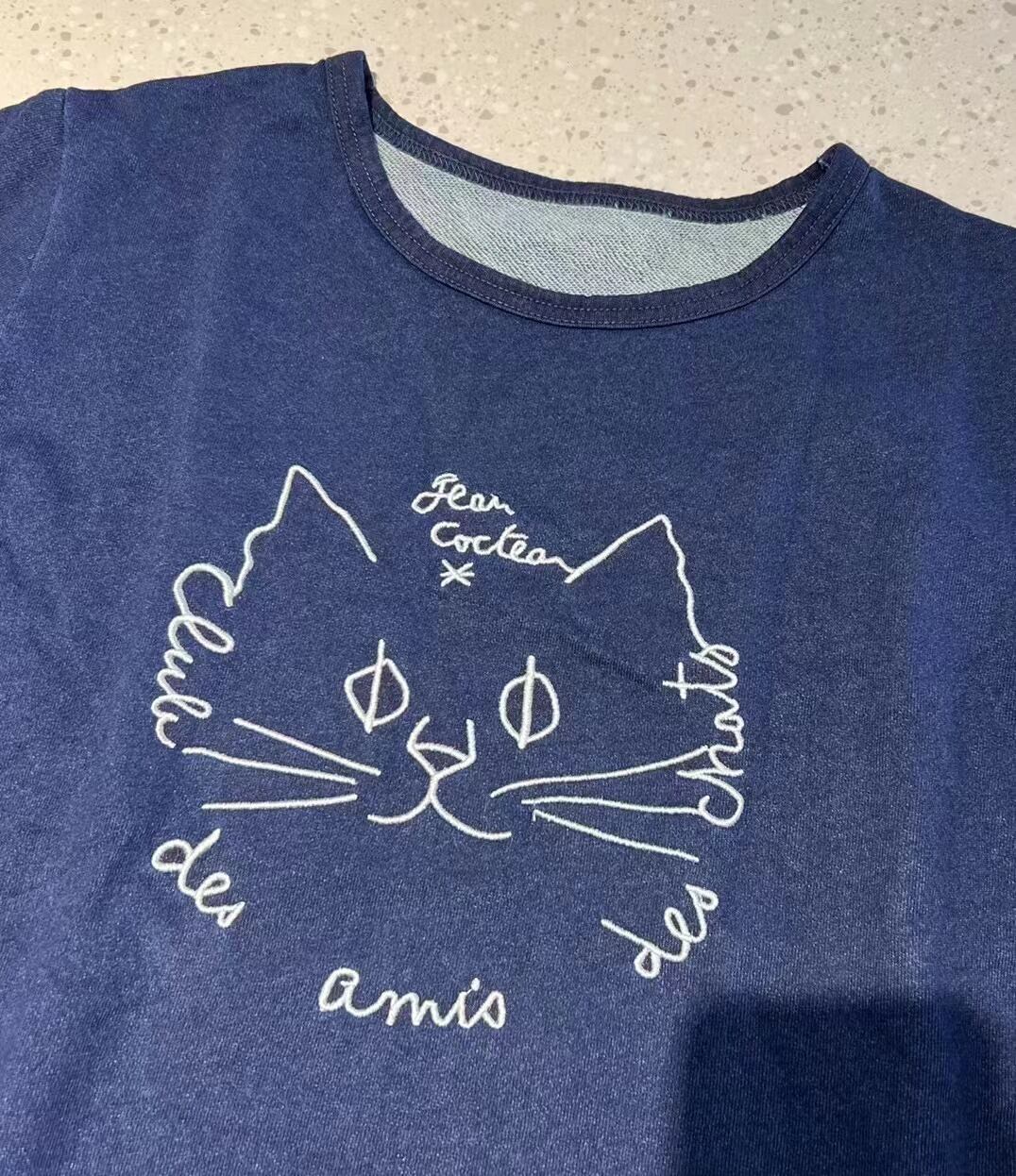 ネコ刺繍インディゴ染めPO