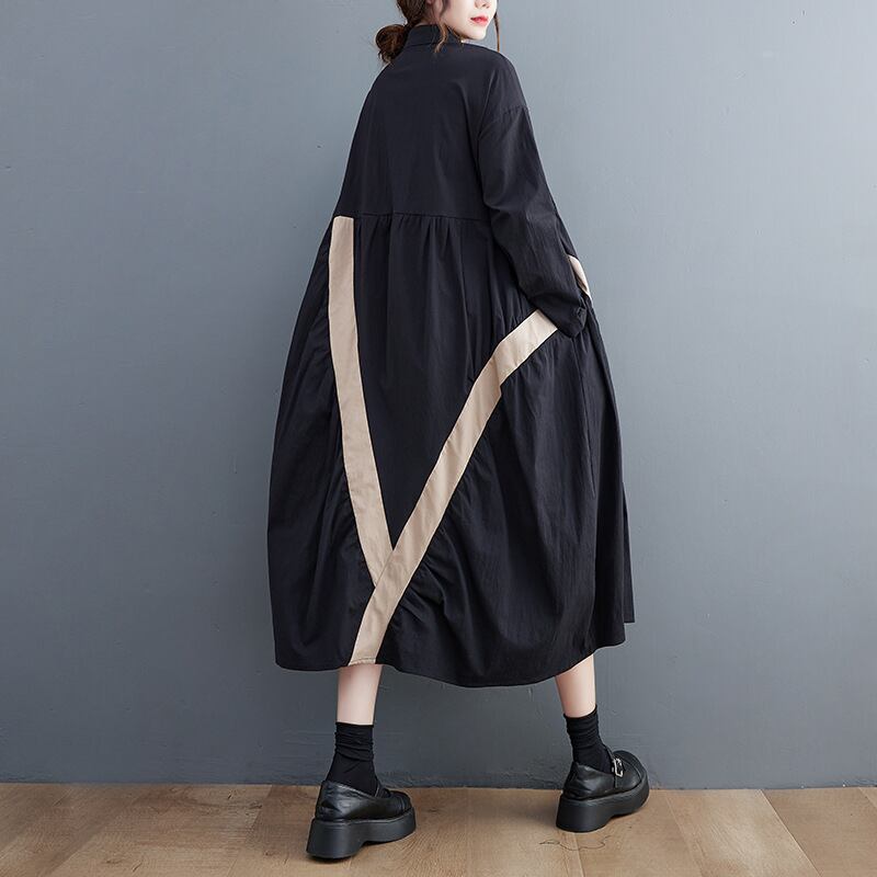 配色ライン入りシャツ衿OP