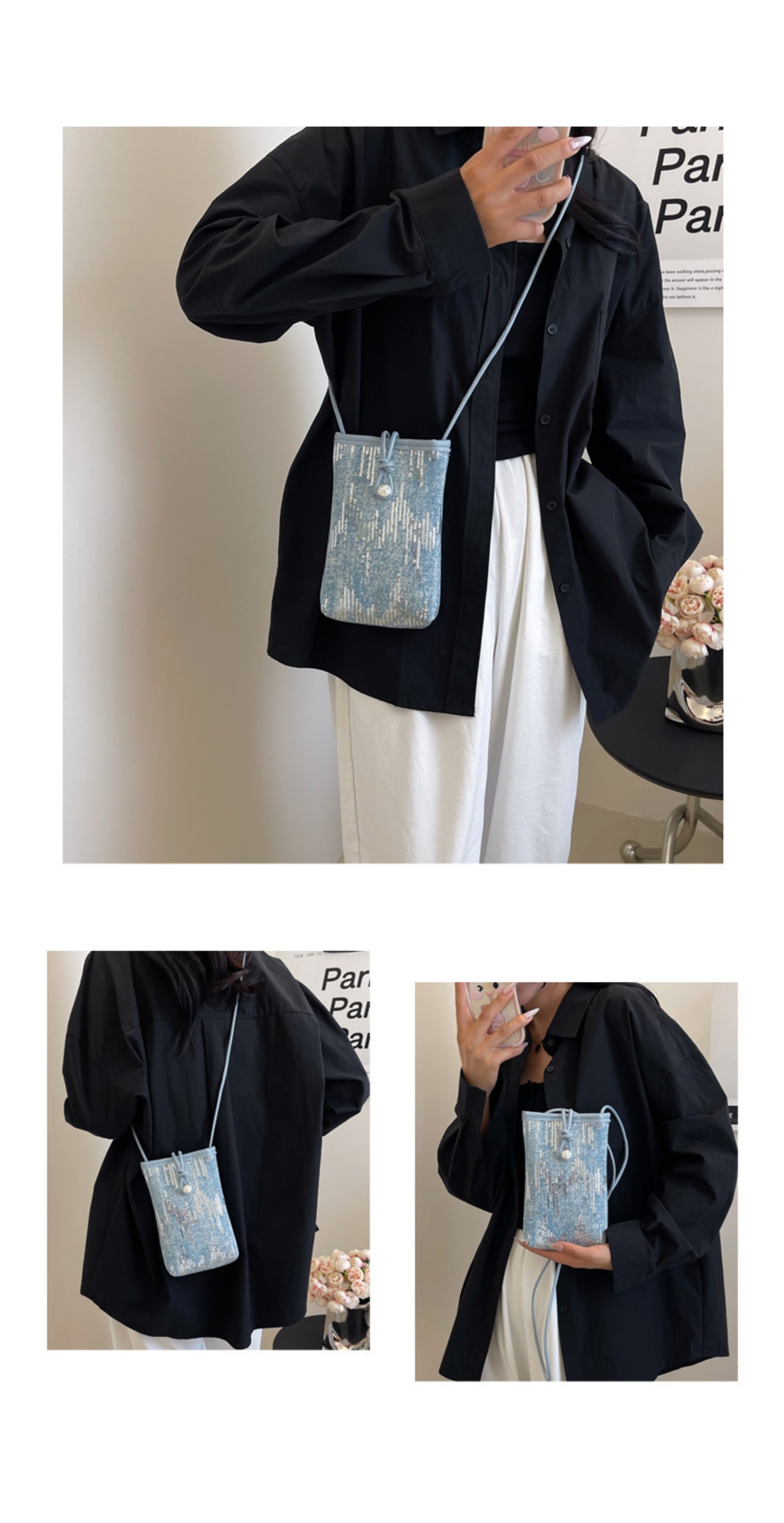 スパンコール使いデニムポーチ