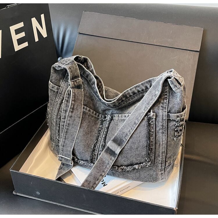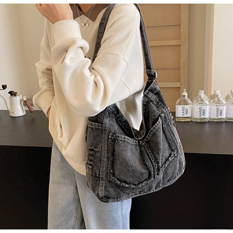 パッチポケット付デニムショルダーバッグ